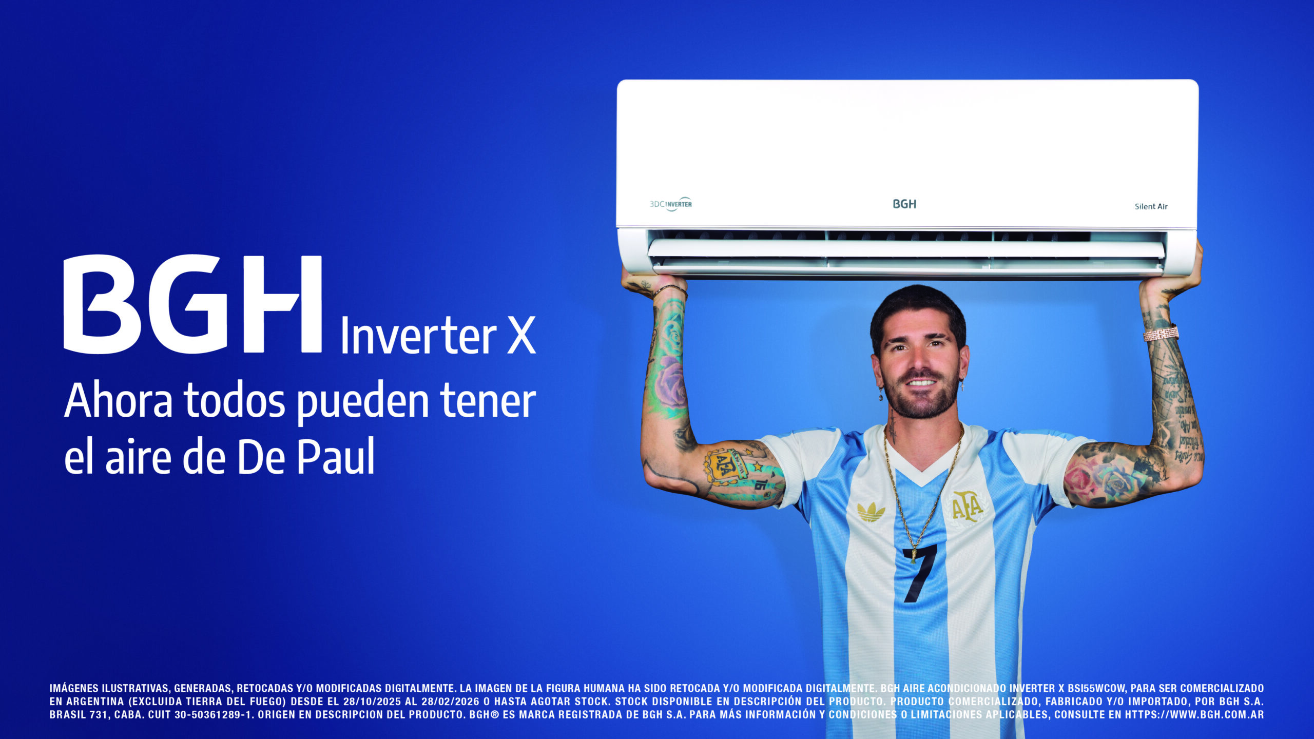 “Con Inverter X damos un paso más en nuestro compromiso por ofrecer soluciones tecnológicas que mejoren la vida de las personas, combinando innovación, eficiencia energética y confort. La figura de Rodrigo De Paul potencia ese mensaje: su rendimiento dentro de la cancha refleja lo que este equipo puede hacer en el hogar”, destacó Daniel Rosenfeld, Director Ejecutivo de BGH Consumer.