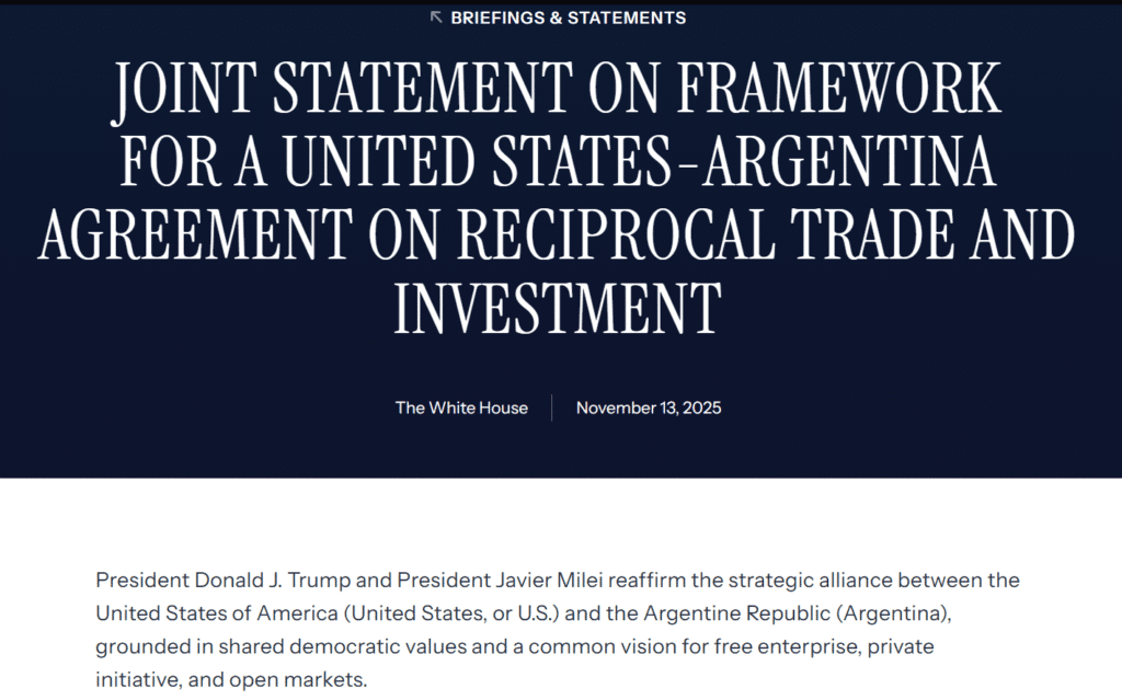 El link al acuerdo completo: https://www.whitehouse.gov/briefings-statements/2025/11/joint-statement-on-framework-for-a-united-states-argentina-agreement-on-reciprocal-trade-and-investment