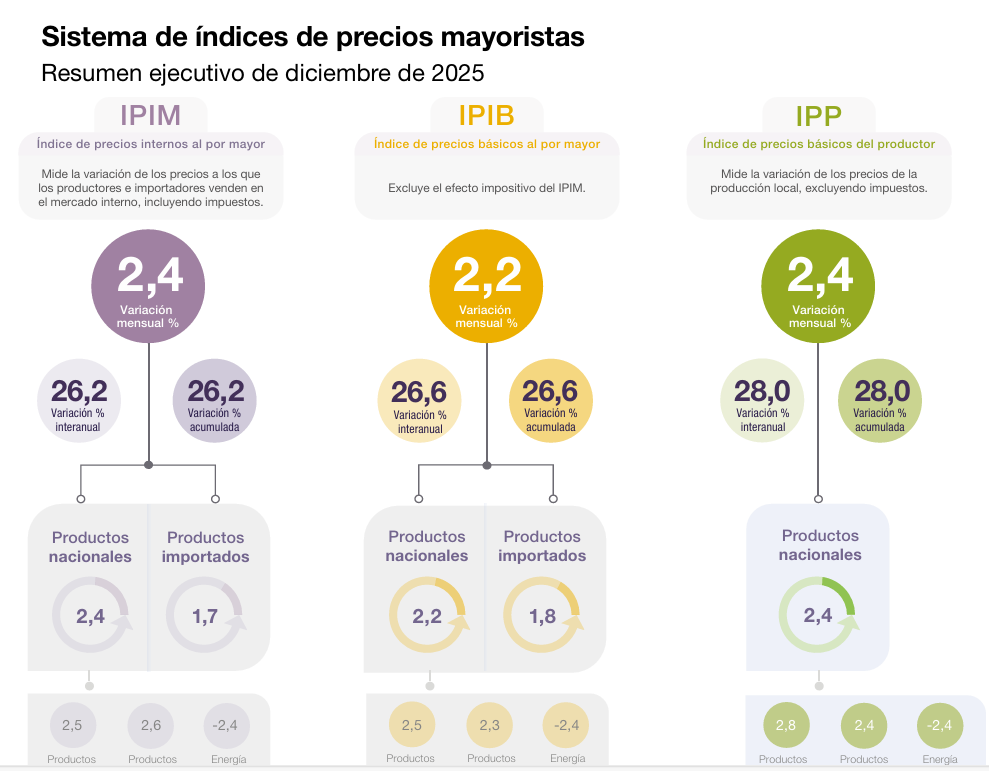 Al igual que en el caso del Indice de Precios al Consumidor (IPC), en 2025 se registró la menor inflación mayorista de los últimos 8 años.